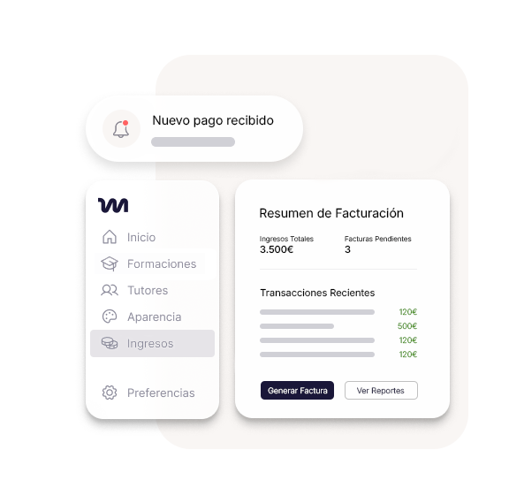 Olvídate de los líos técnicos. Céntrate en tus alumnos mientras tus ingresos crecen de forma recurrente. -